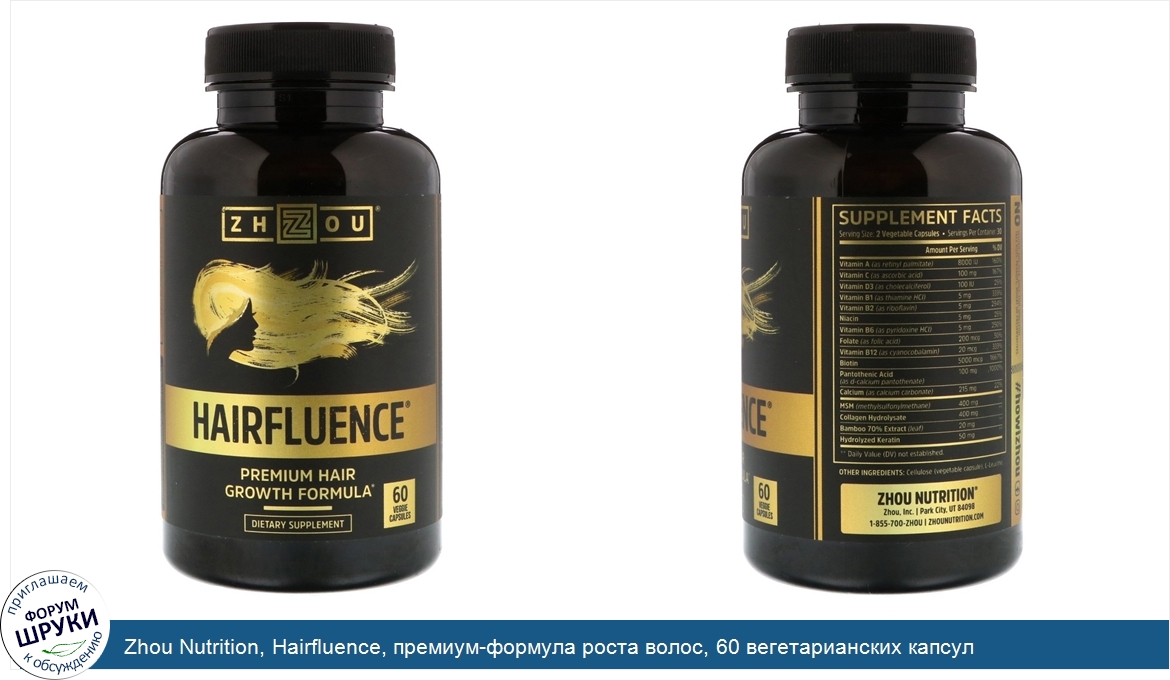 Zhou Nutrition, Hairfluence, премиум-формула роста волос, 60 вегетарианских капсул
