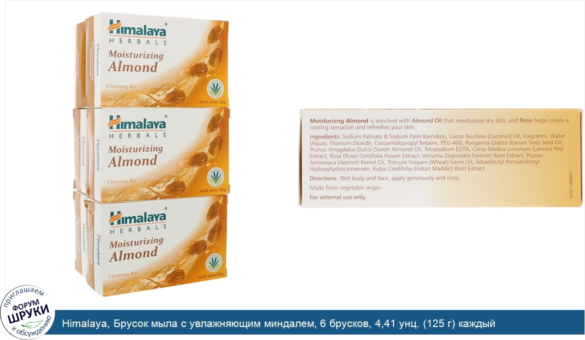 Друзья, если у вас есть отзыв/дополнение/комментарий/вопрос относительно Himalaya, Брусок мыла с увлажняющим миндалем, 6 брусков, 4,41 унц. (125 г) каждый - напишите его ответом в эту тему (это будет полезно всему сообществу в целом и вам в отдельности).