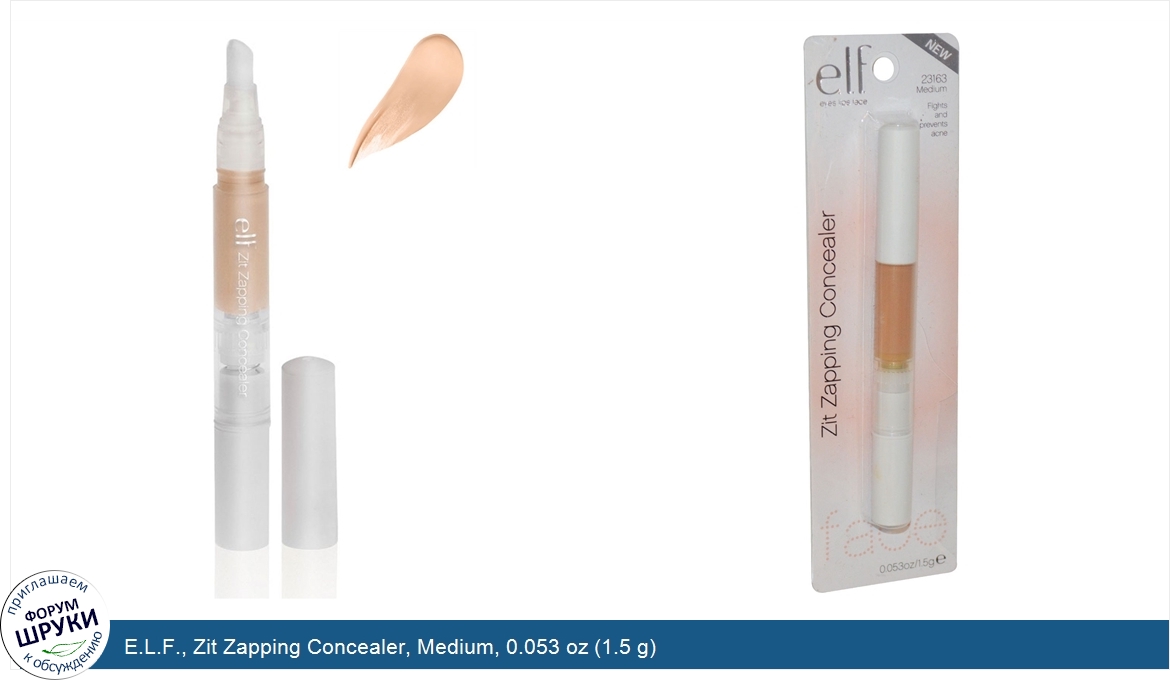 Друзья, если у вас есть отзыв/дополнение/комментарий/вопрос относительно E.L.F., Zit Zapping Concealer, Medium, 0.053 oz (1.5 g) - напишите его ответом в эту тему (это будет полезно всему сообществу в целом и вам в отдельности).