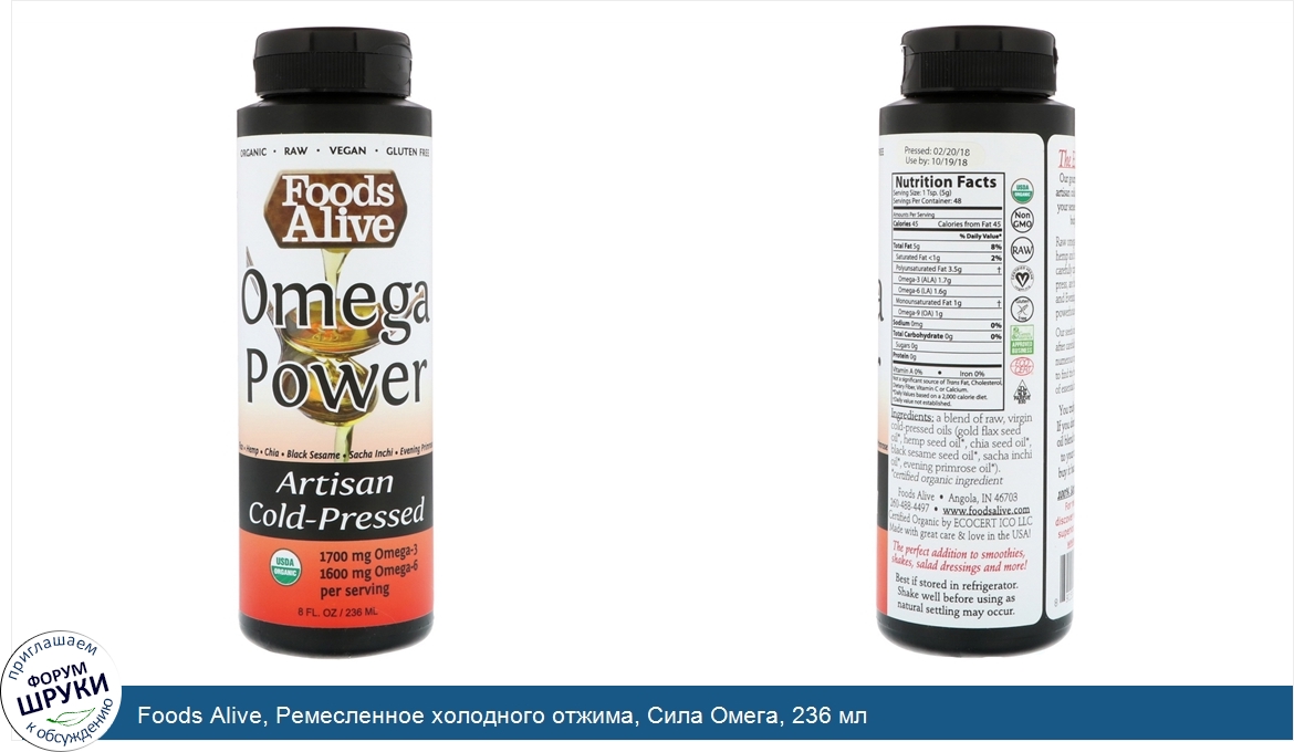 Foods Alive, Ремесленное холодного отжима, Сила Омега, 236 мл