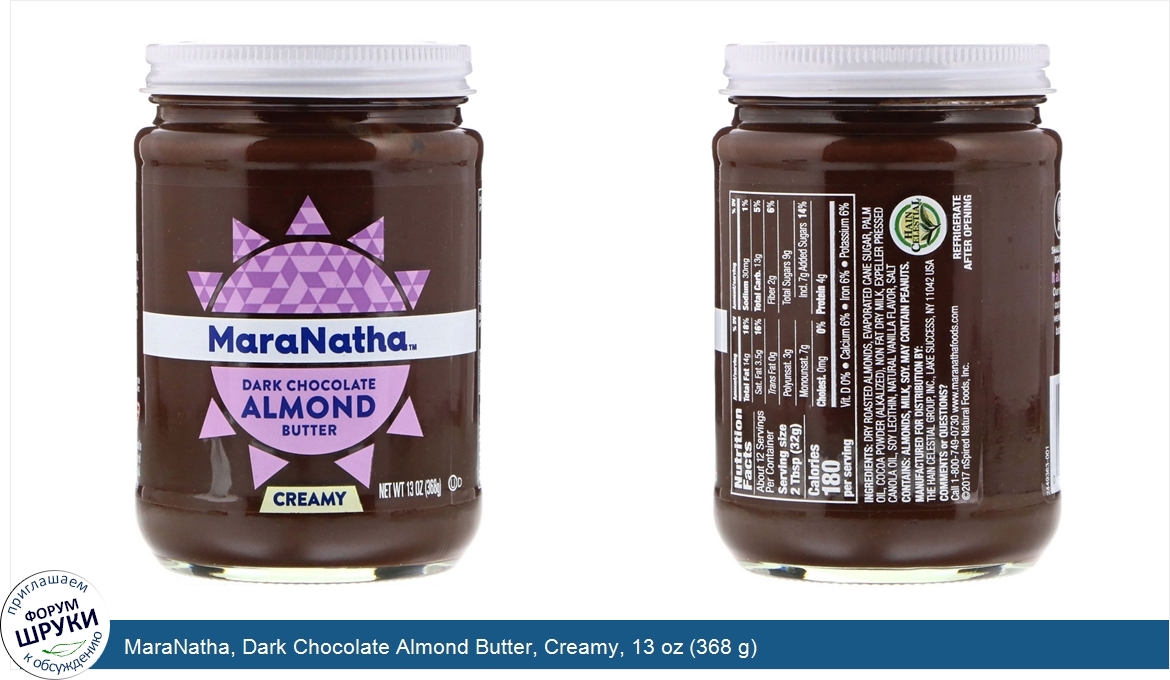 Друзья, если у вас есть отзыв/дополнение/комментарий/вопрос относительно MaraNatha, Dark Chocolate Almond Butter, Creamy, 13 oz (368 g) - напишите его ответом в эту тему (это будет полезно всему сообществу в целом и вам в отдельности).