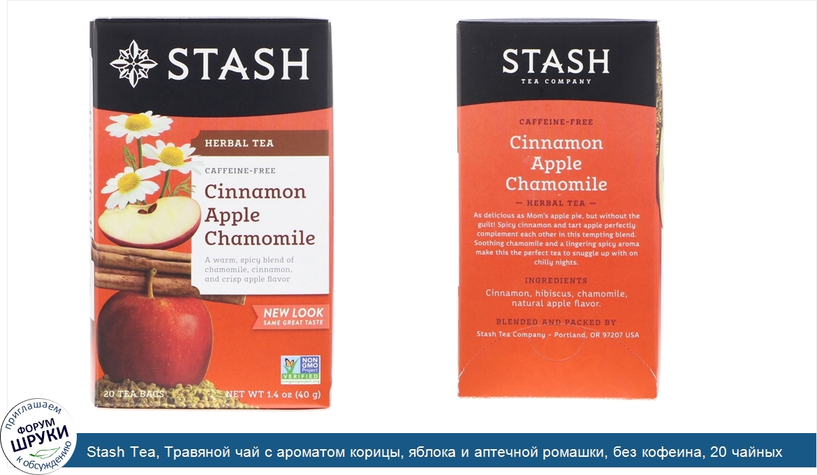 [DESCRIPT]Estd 1972. Non GMO Project Verified. Open to Bring Your Taste Buds to Life. Open. Sip. Smile. Repeat. Kosher Parve. Certified B Corporation. A warm, spicy blend of chamomille, cinnamon, and crisp apple flavor. - Herbal Tea-. As delicious as Mom's apple pie, but without the guilt! Spicy cinnamon and tart apple perfectly complement each other in this tempting blend. Soothing chamomile and a lingering spicy aroma make this the perfect tea to snuggle up with on chilly nights. Explore. -. Our. -. World of Tea. At Stash, we aren't just makers of tea, we're tea people. Every day we craft the world's finest all-natural tea blends using the purest ingredients. And as active global citizens, we believe that "doing it right" means more than just creating great tea. We selectively partner with farmers and suppliers who share our priorities of quality, environmental stewardship, and progressive human rights. In addition, we strive to nurture a culture of innovation and purpose within our company. Tea is in our soul, and we exist to share that passion in every cup.[/DESCRIPT]... (описание дополняется)