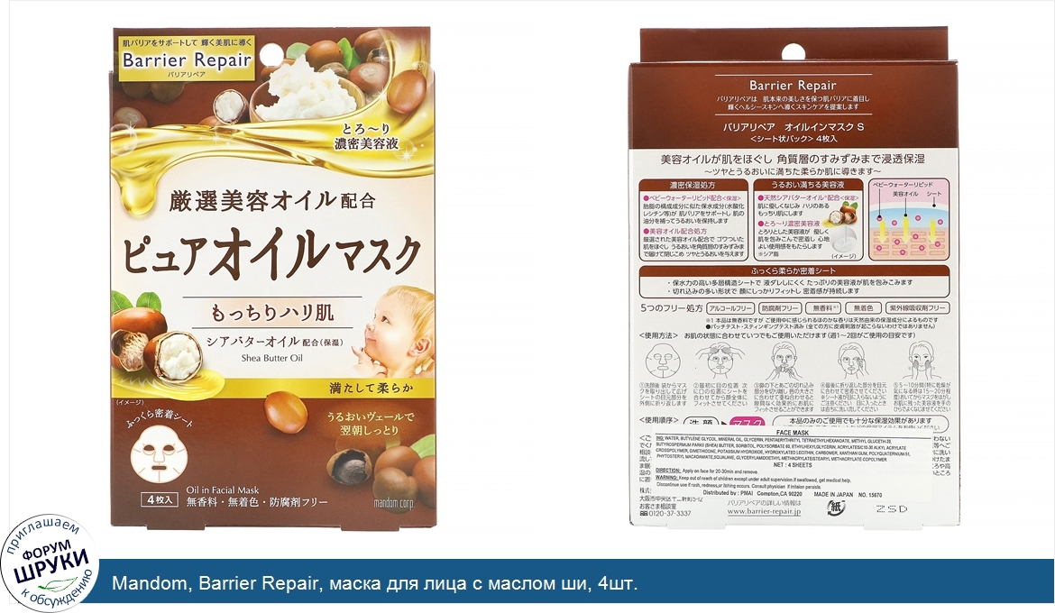 Друзья, если у вас есть отзыв/дополнение/комментарий/вопрос относительно Mandom, Barrier Repair, маска для лица с маслом ши, 4шт. - напишите его ответом в эту тему (это будет полезно всему сообществу в целом и вам в отдельности).
