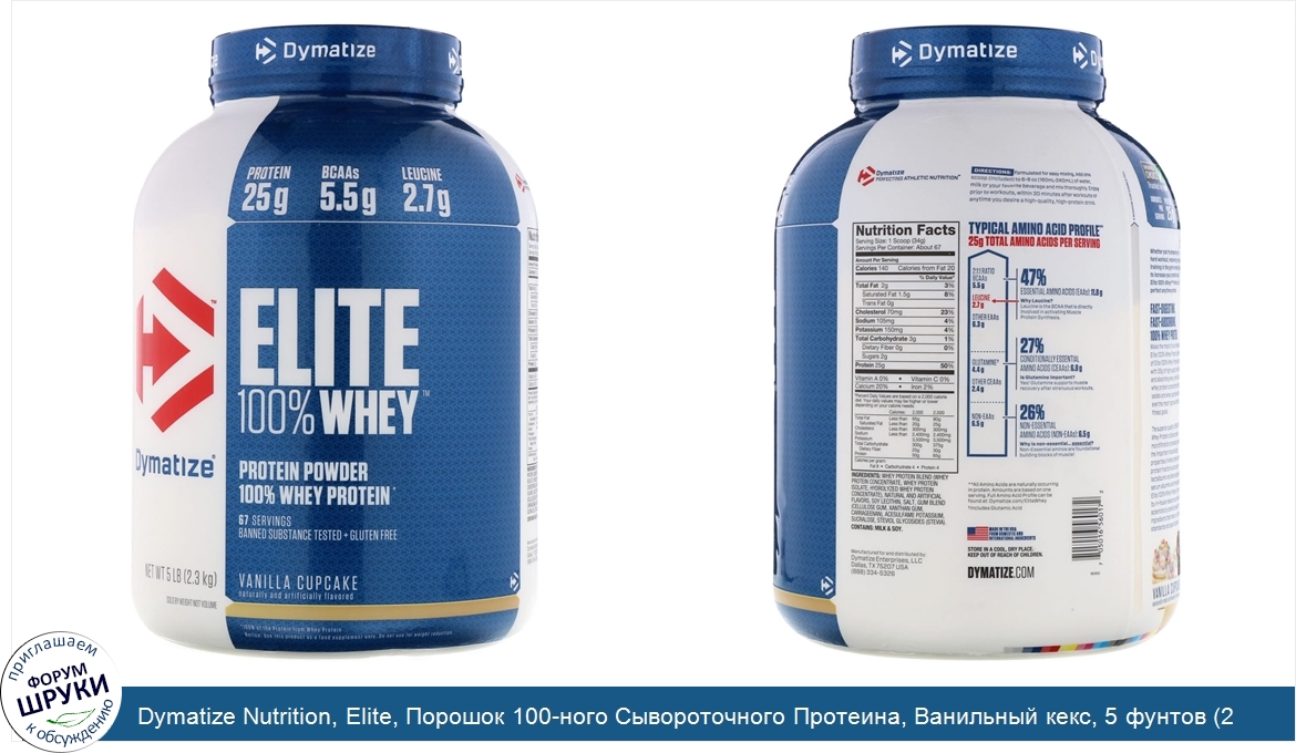 Друзья, если у вас есть отзыв/дополнение/комментарий/вопрос относительно Dymatize Nutrition, Elite, Порошок 100-ного Сывороточного Протеина, Ванильный кекс, 5 фунтов (2,3 кг) - напишите его ответом в эту тему (это будет полезно всему сообществу в целом и вам в отдельности).