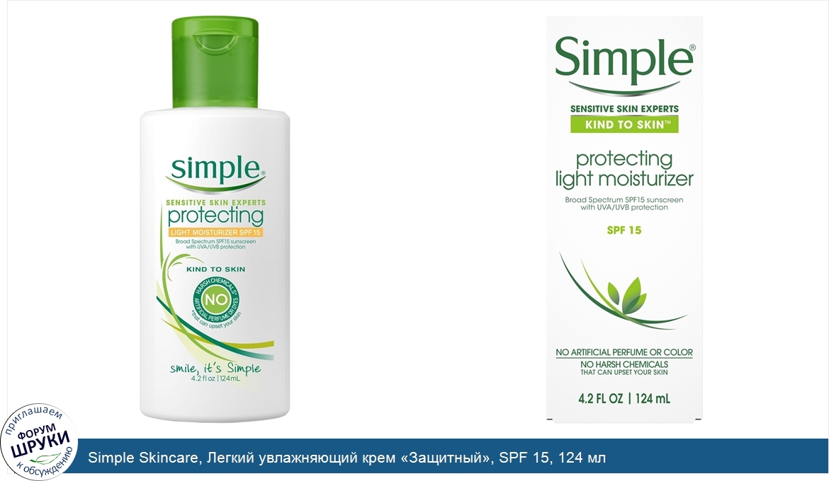 Simple Skincare, Легкий увлажняющий крем «Защитный», SPF 15, 124 мл