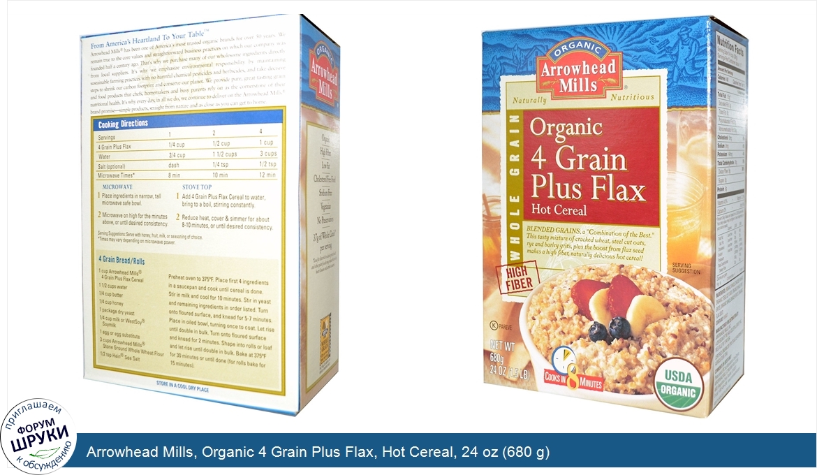 Arrowhead Mills, Organic 4 Grain Plus Flax, Hot Cereal, 24 oz (680 g)