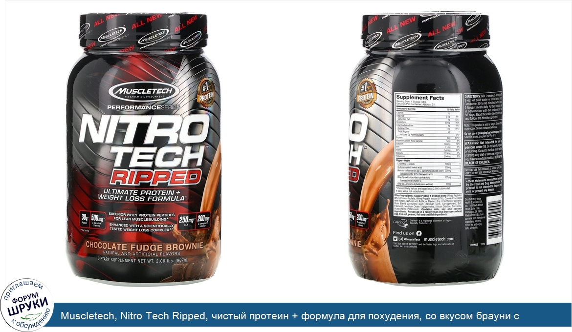 Друзья, если у вас есть отзыв/дополнение/комментарий/вопрос относительно Muscletech, Nitro Tech Ripped, чистый протеин + формула для похудения, со вкусом брауни с шоколадной помадкой, 907г (2фунта) - напишите его ответом в эту тему (это будет полезно всему сообществу в целом и вам в отдельности).