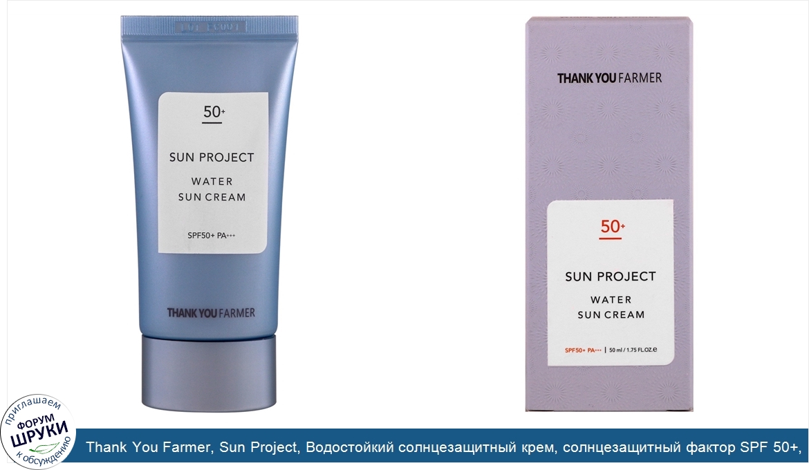 Thank You Farmer, Sun Project, Водостойкий солнцезащитный крем, солнцезащитный фактор SPF 50+, 50 мл (1,75 унций)