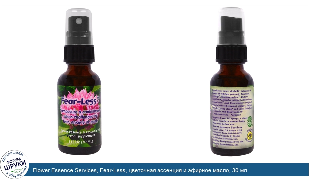 Друзья, если у вас есть отзыв/дополнение/комментарий/вопрос относительно Flower Essence Services, Fear-Less, цветочная эссенция и эфирное масло, 30 мл - напишите его ответом в эту тему (это будет полезно всему сообществу в целом и вам в отдельности).