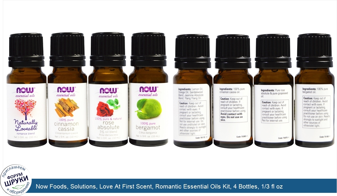 Друзья, если у вас есть отзыв/дополнение/комментарий/вопрос относительно Now Foods, Solutions, Love At First Scent, Romantic Essential Oils Kit, 4 Bottles, 1/3 fl oz (10 ml) Each - напишите его ответом в эту тему (это будет полезно всему сообществу в целом и вам в отдельности).