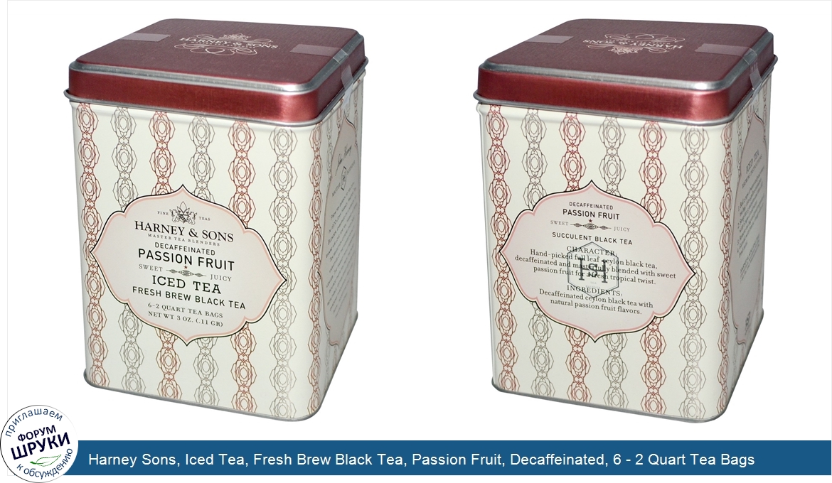 Harney Sons, Iced Tea, Fresh Brew Black Tea, Passion Fruit, Decaffeinated, 6 - 2 Quart Tea Bags, 3 oz