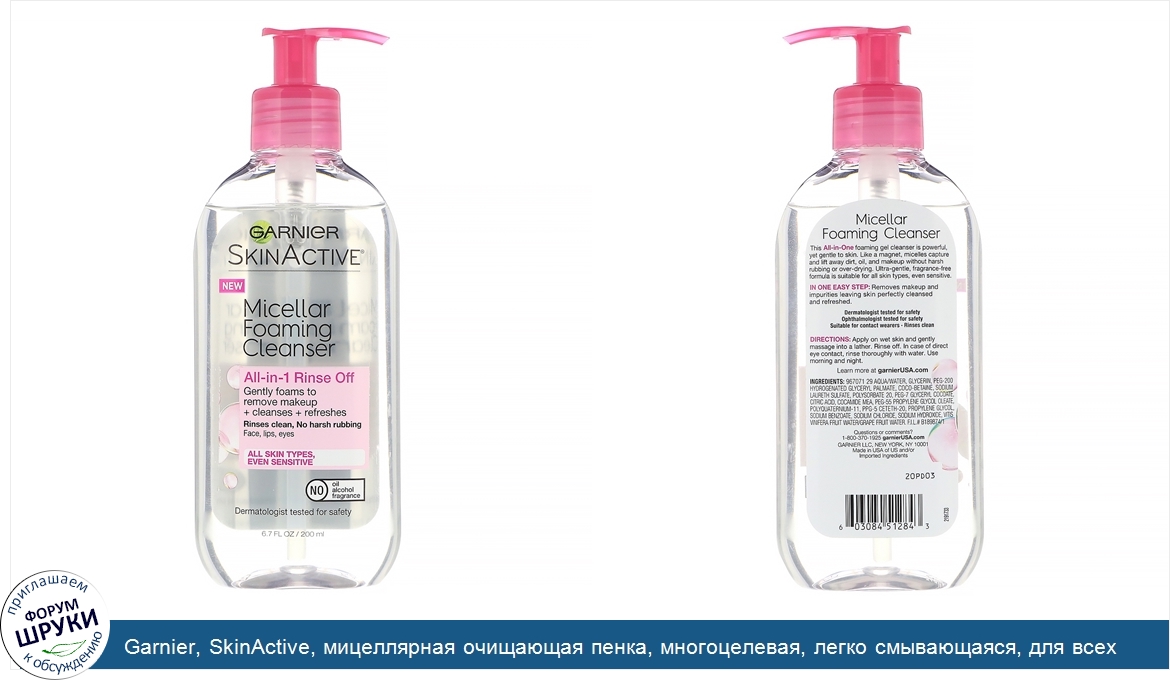 Друзья, если у вас есть отзыв/дополнение/комментарий/вопрос относительно Garnier, SkinActive, мицеллярная очищающая пенка, многоцелевая, легко смывающаяся, для всех типов кожи, 200мл (6,7 жидк.унции) - напишите его ответом в эту тему (это будет полезно всему сообществу в целом и вам в отдельности).