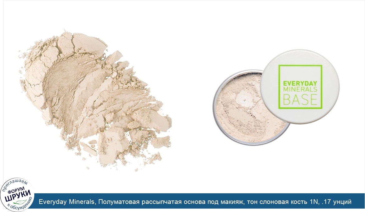 Everyday Minerals, Полуматовая рассыпчатая основа под макияж, тон слоновая кость 1N, .17 унций (4.8 г)