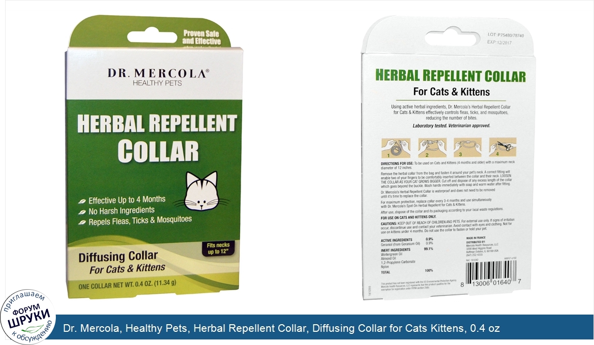 Друзья, если у вас есть отзыв/дополнение/комментарий/вопрос относительно Dr. Mercola, Healthy Pets, Herbal Repellent Collar, Diffusing Collar for Cats Kittens, 0.4 oz (11.34 g) - напишите его ответом в эту тему (это будет полезно всему сообществу в целом и вам в отдельности).