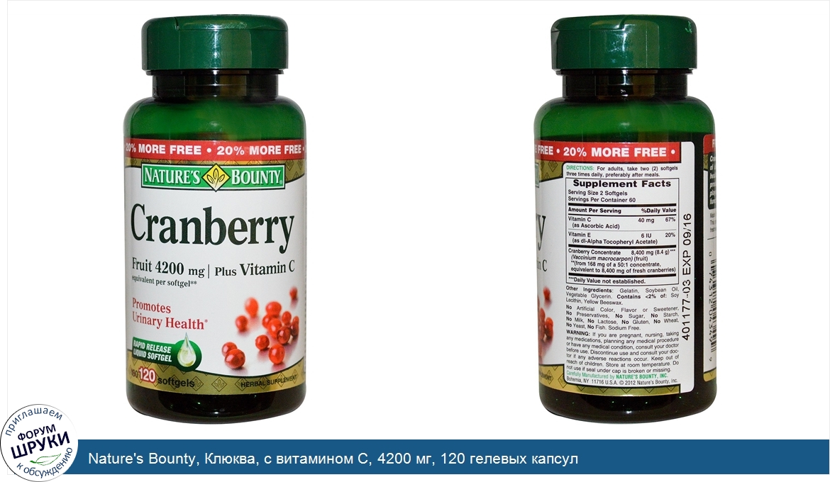 Друзья, если у вас есть отзыв/дополнение/комментарий/вопрос относительно Nature's Bounty, Клюква, с витамином C, 4200 мг, 120 гелевых капсул - напишите его ответом в эту тему (это будет полезно всему сообществу в целом и вам в отдельности).