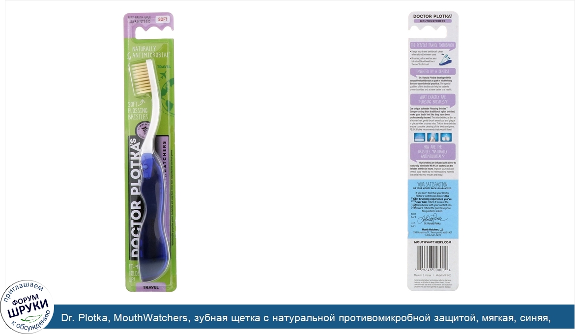 Друзья, если у вас есть отзыв/дополнение/комментарий/вопрос относительно Dr. Plotka, MouthWatchers, зубная щетка с натуральной противомикробной защитой, мягкая, синяя, 1 зубная щетка - напишите его ответом в эту тему (это будет полезно всему сообществу в целом и вам в отдельности).