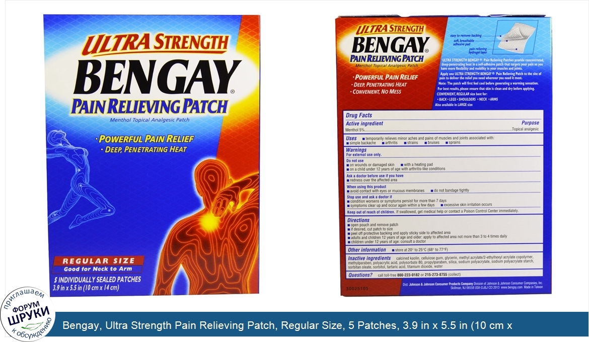Друзья, если у вас есть отзыв/дополнение/комментарий/вопрос относительно Bengay, Ultra Strength Pain Relieving Patch, Regular Size, 5 Patches, 3.9 in x 5.5 in (10 cm x 14 cm) - напишите его ответом в эту тему (это будет полезно всему сообществу в целом и вам в отдельности).