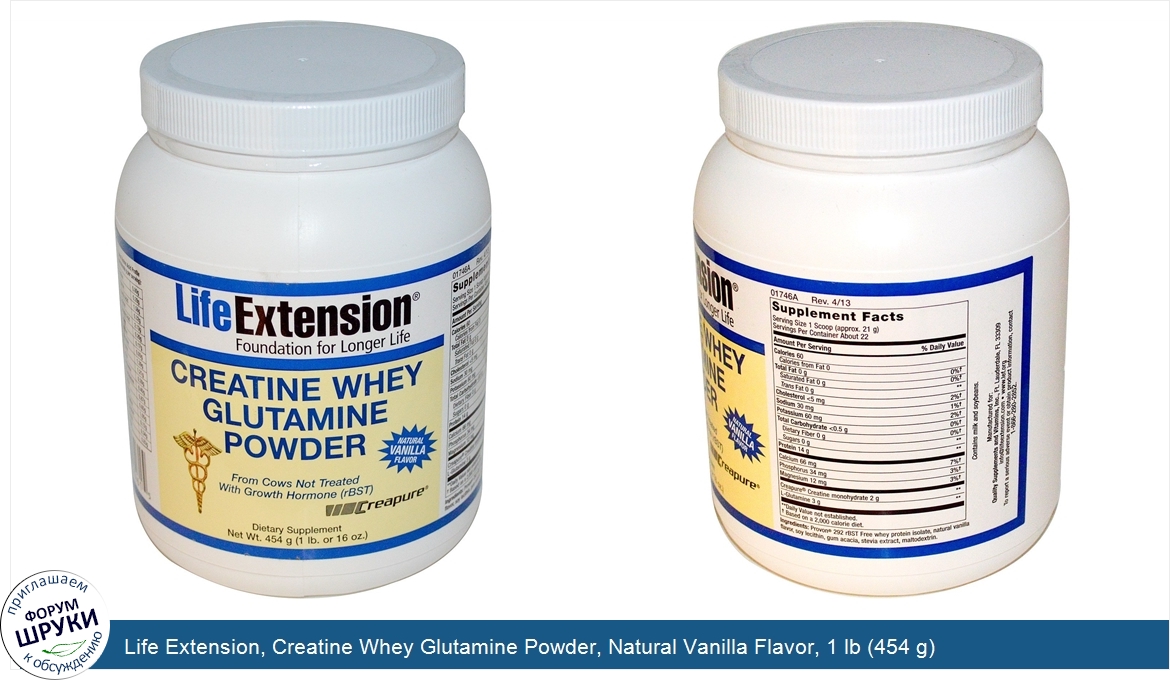 Друзья, если у вас есть отзыв/дополнение/комментарий/вопрос относительно Life Extension, Creatine Whey Glutamine Powder, Natural Vanilla Flavor, 1 lb (454 g) - напишите его ответом в эту тему (это будет полезно всему сообществу в целом и вам в отдельности).