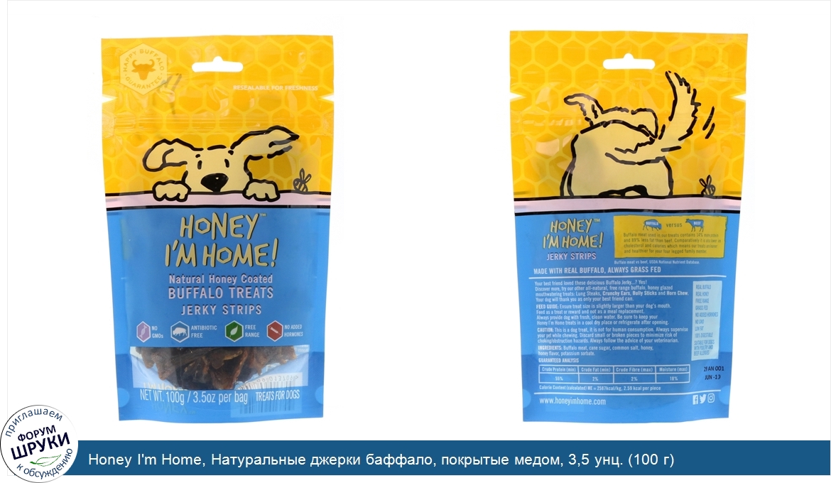 Друзья, если у вас есть отзыв/дополнение/комментарий/вопрос относительно Honey I'm Home, Натуральные джерки баффало, покрытые медом, 3,5 унц. (100 г) - напишите его ответом в эту тему (это будет полезно всему сообществу в целом и вам в отдельности).