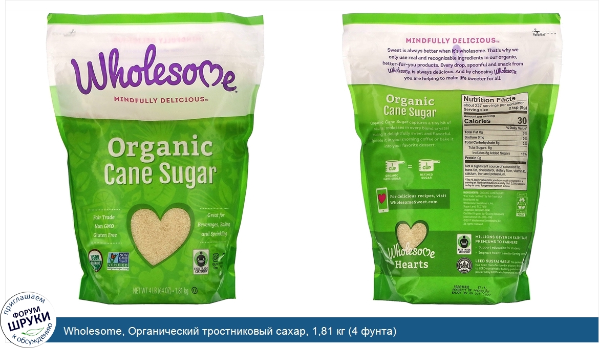 Друзья, если у вас есть отзыв/дополнение/комментарий/вопрос относительно Wholesome, Органический тростниковый сахар, 1,81 кг (4 фунта) - напишите его ответом в эту тему (это будет полезно всему сообществу в целом и вам в отдельности).
