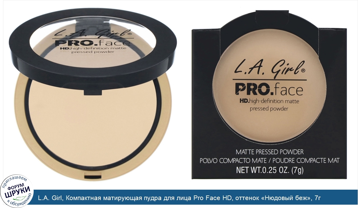 L.A. Girl, Компактная матирующая пудра для лица Pro Face HD, оттенок «Нюдовый беж», 7г