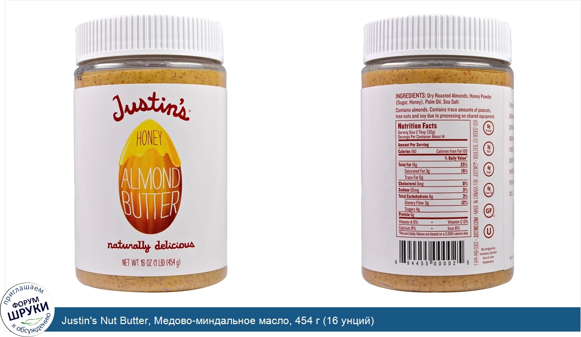 Друзья, если у вас есть отзыв/дополнение/комментарий/вопрос относительно Justin's Nut Butter, Медово-миндальное масло, 454 г (16 унций) - напишите его ответом в эту тему (это будет полезно всему сообществу в целом и вам в отдельности).