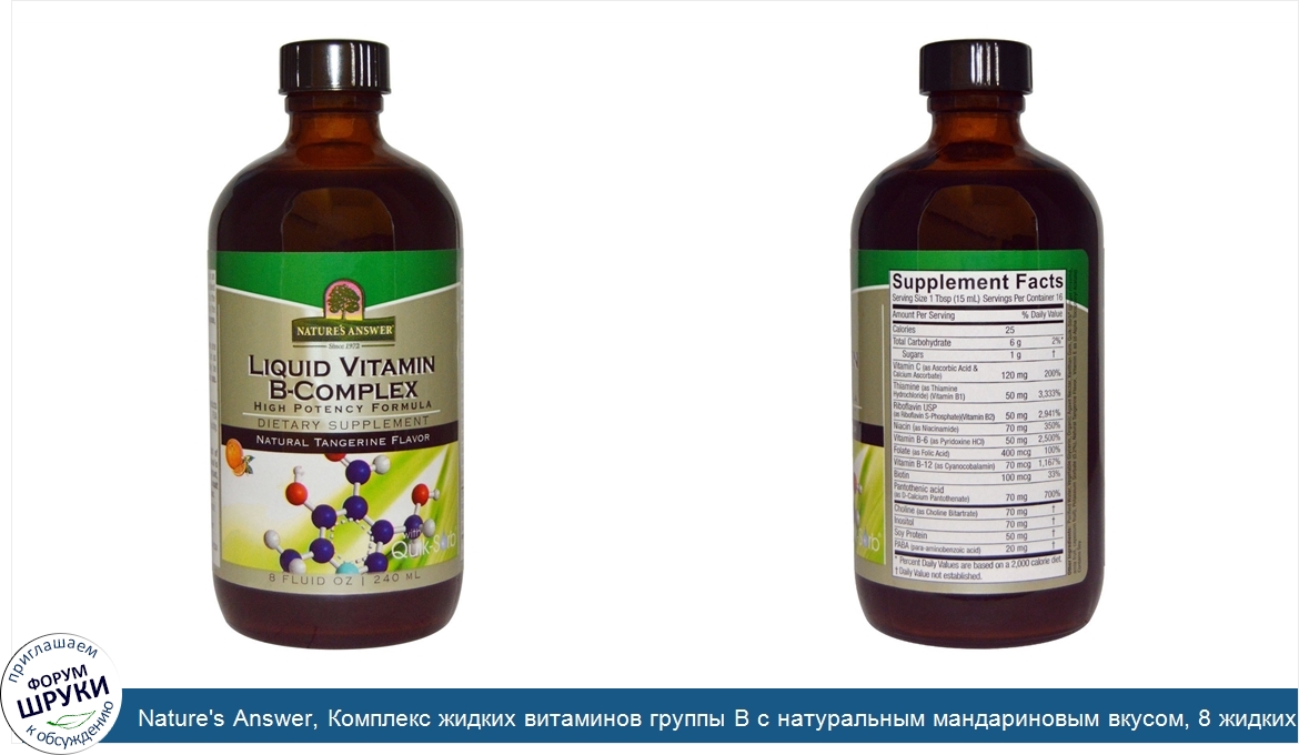 Друзья, если у вас есть отзыв/дополнение/комментарий/вопрос относительно Nature's Answer, Комплекс жидких витаминов группы В с натуральным мандариновым вкусом, 8 жидких унций (240 мл) - напишите его ответом в эту тему (это будет полезно всему сообществу в целом и вам в отдельности).