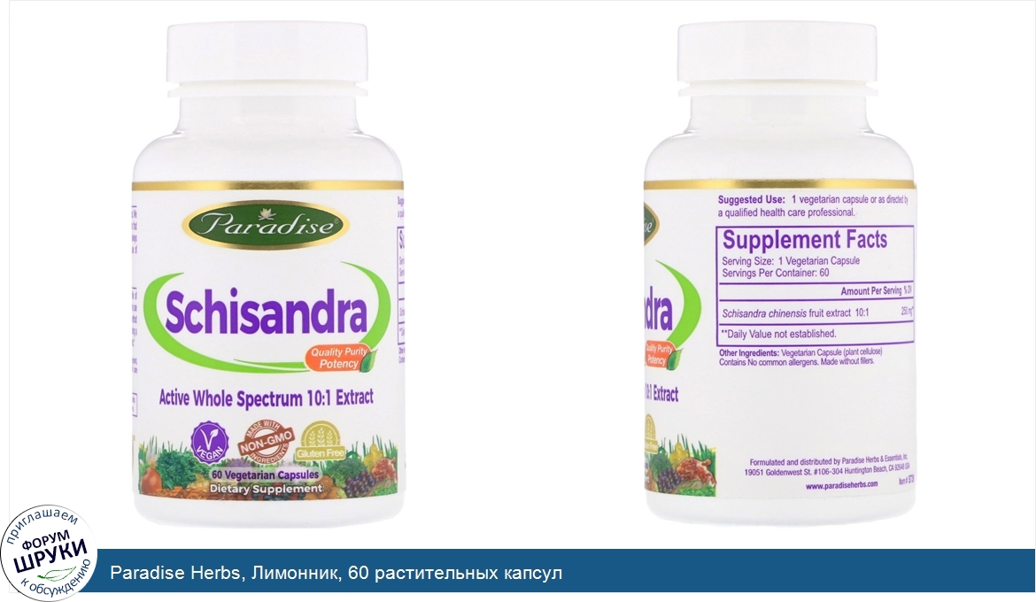 Друзья, если у вас есть отзыв/дополнение/комментарий/вопрос относительно Paradise Herbs, Лимонник, 60 растительных капсул - напишите его ответом в эту тему (это будет полезно всему сообществу в целом и вам в отдельности).