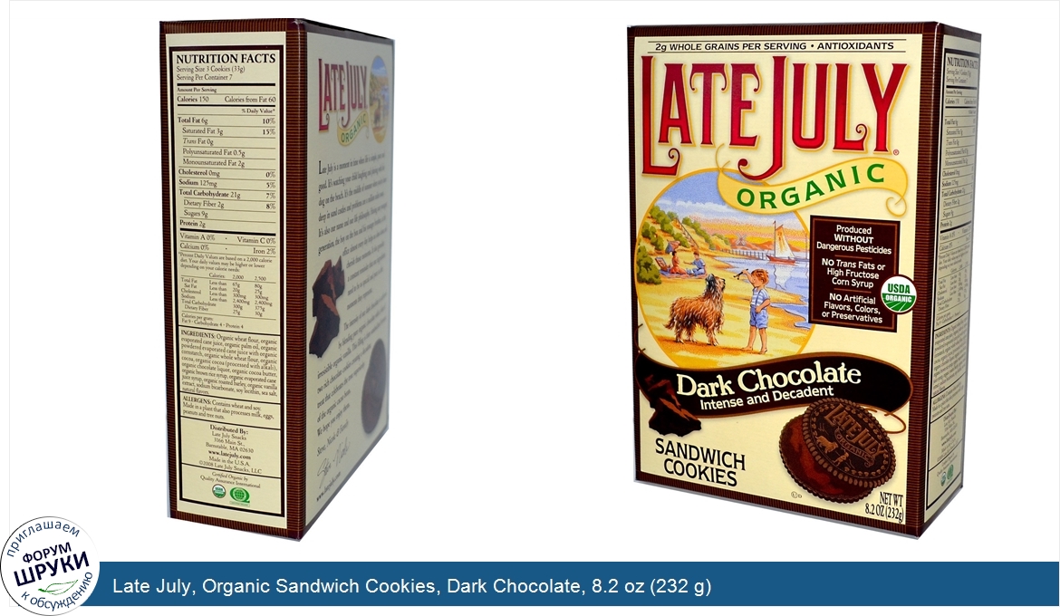 Друзья, если у вас есть отзыв/дополнение/комментарий/вопрос относительно Late July, Organic Sandwich Cookies, Dark Chocolate, 8.2 oz (232 g) - напишите его ответом в эту тему (это будет полезно всему сообществу в целом и вам в отдельности).
