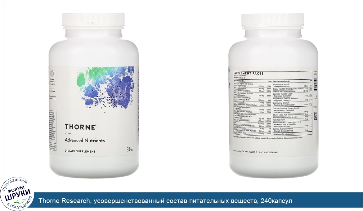 Друзья, если у вас есть отзыв/дополнение/комментарий/вопрос относительно Thorne Research, усовершенствованный состав питательных веществ, 240капсул - напишите его ответом в эту тему (это будет полезно всему сообществу в целом и вам в отдельности).