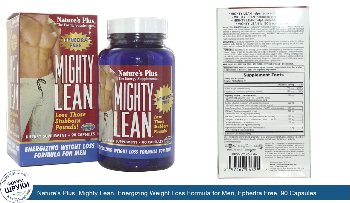 [DESCRIPT]The Energy Supplements. Lose Those Stubborn Pounds! . Dietary Supplement. Gluten Free. Mighty Lean Helps Reduce Cravings for Food. Mighty Lean Increases Energy Naturally. Mighty Lean Helps Increase Metabolism. Mighty Lean is 100% Ephedra-Free. Citrimax. ChromeMate. Clarinol. BioPerine. ForsLean. Nature's Plus Mighty Lean is a revolutionary nutritional breakthrough designed to ignite your personal fitness plan to new heights. Each power-packed, ephedra-free capsule unites the numerous benefits of energizing herbal extracts and patented metabolic factors with the exhilarating effects of adaptogenic Rhodiola, Eleuthero and Korean Ginseng. Mighty Lean is perfect for individuals seeking to lose those stubborn pounds quickly and safely.[/DESCRIPT]... (описание дополняется)