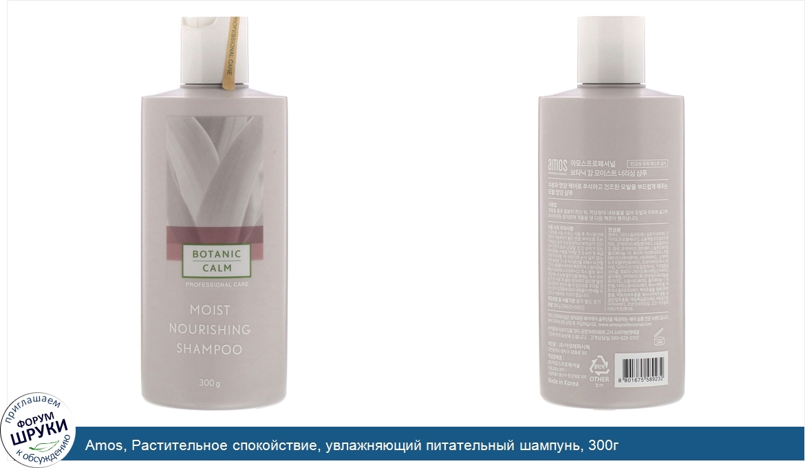 Amos, Растительное спокойствие, увлажняющий питательный шампунь, 300г