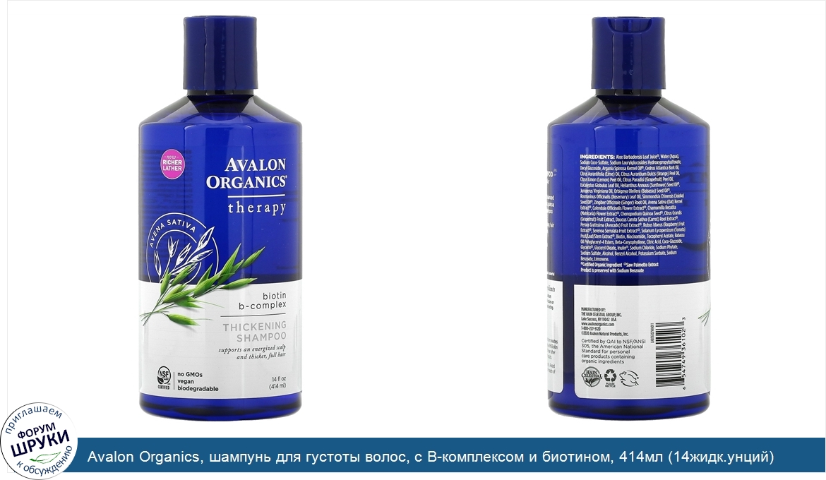 Avalon Organics, шампунь для густоты волос, с В-комплексом и биотином, 414мл (14жидк.унций)