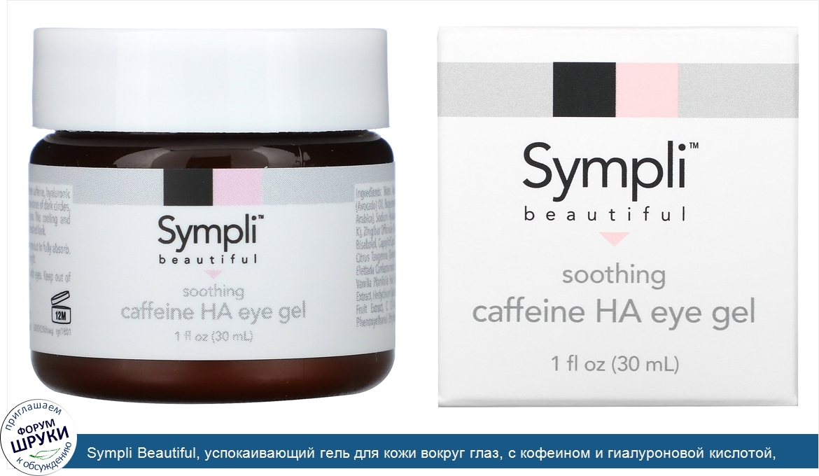 Sympli Beautiful, успокаивающий гель для кожи вокруг глаз, с кофеином и гиалуроновой кислотой, 30мл (1жидк.унция)