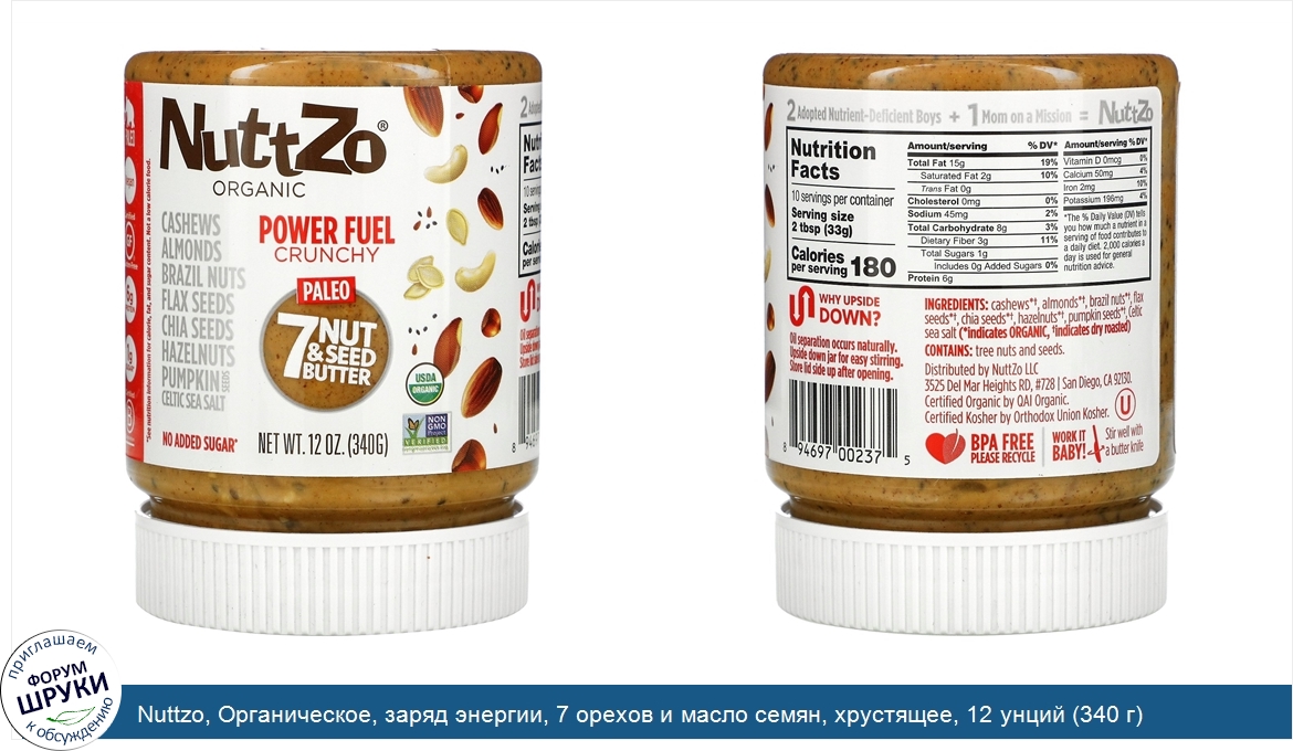 Друзья, если у вас есть отзыв/дополнение/комментарий/вопрос относительно Nuttzo, Органическое, заряд энергии, 7 орехов и масло семян, хрустящее, 12 унций (340 г) - напишите его ответом в эту тему (это будет полезно всему сообществу в целом и вам в отдельности).