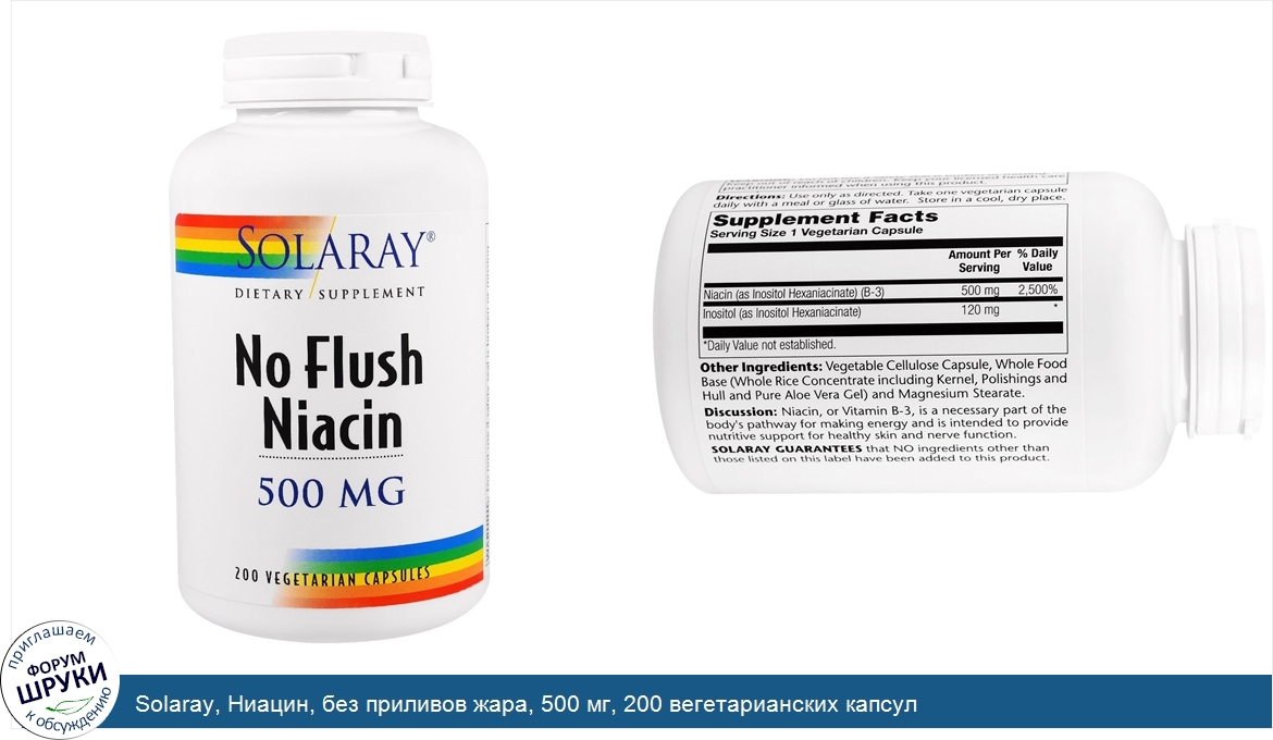 ru Solaray, Ниацин, без приливов жара, 500 мг, 200 вегетарианских капсул