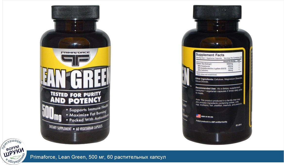 Primaforce, Lean Green, 500 мг, 60 растительных капсул