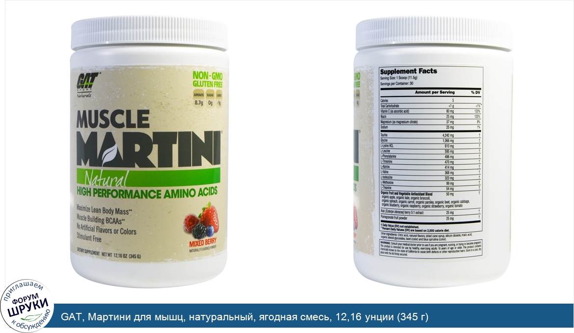Друзья, если у вас есть отзыв/дополнение/комментарий/вопрос относительно GAT, Мартини для мышц, натуральный, ягодная смесь, 12,16 унции (345 г) - напишите его ответом в эту тему (это будет полезно всему сообществу в целом и вам в отдельности).