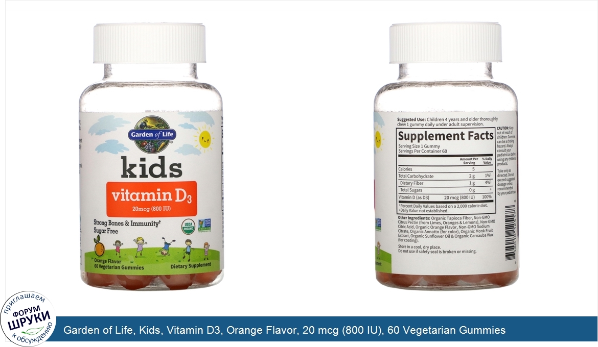 Друзья, если у вас есть отзыв/дополнение/комментарий/вопрос относительно Garden of Life, Kids, Vitamin D3, Orange Flavor, 20 mcg (800 IU), 60 Vegetarian Gummies - напишите его ответом в эту тему (это будет полезно всему сообществу в целом и вам в отдельности).