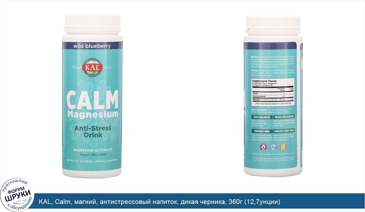 Друзья, если у вас есть отзыв/дополнение/комментарий/вопрос относительно KAL, Calm, магний, антистрессовый напиток, дикая черника, 360г (12,7унции) - напишите его ответом в эту тему (это будет полезно всему сообществу в целом и вам в отдельности).