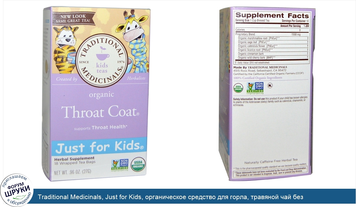 Друзья, если у вас есть отзыв/дополнение/комментарий/вопрос относительно Traditional Medicinals, Just for Kids, органическое средство для горла, травяной чай без кофеина, 18 чайных пакетиков в индивидуальной упаковке, 0,96 унции (27 г) - напишите его ответом в эту тему (это будет полезно всему сообществу в целом и вам в отдельности).