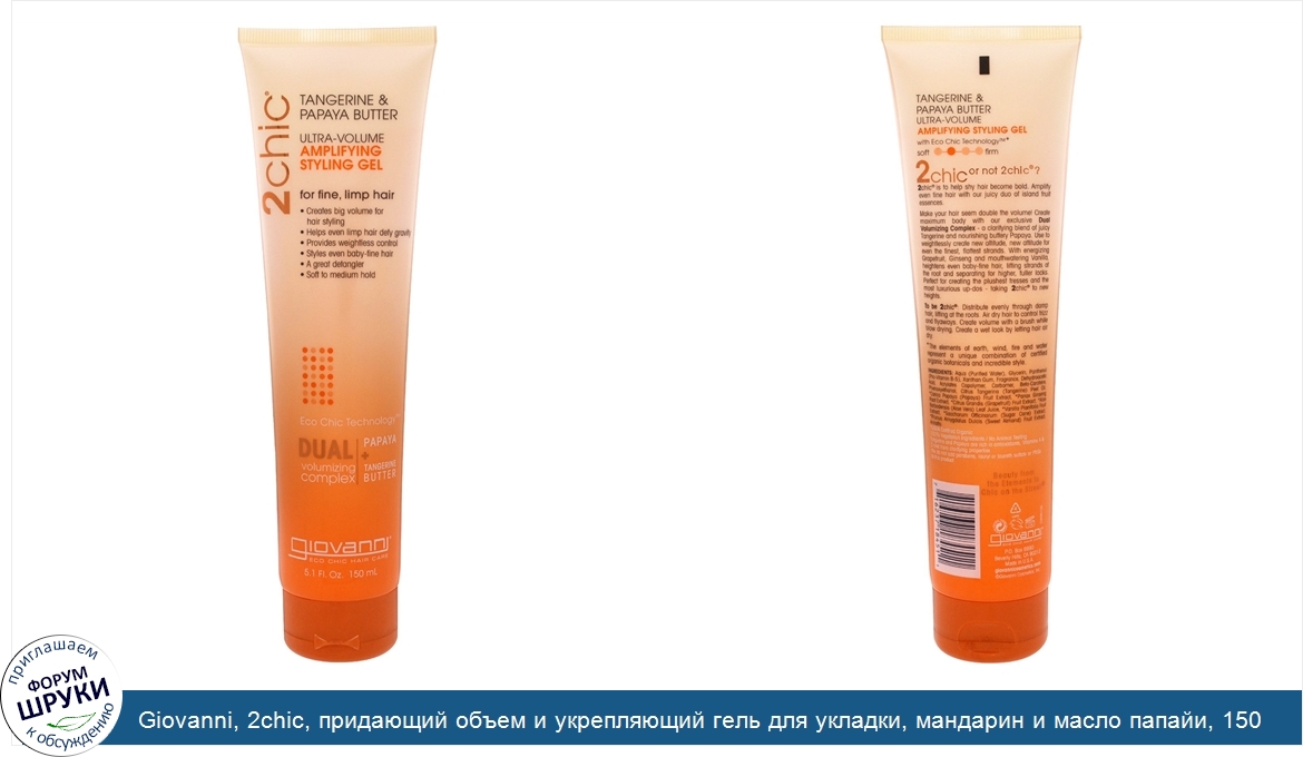 Друзья, если у вас есть отзыв/дополнение/комментарий/вопрос относительно Giovanni, 2chic, придающий объем и укрепляющий гель для укладки, мандарин и масло папайи, 150 мл (5,1 жидких унций) - напишите его ответом в эту тему (это будет полезно всему сообществу в целом и вам в отдельности).