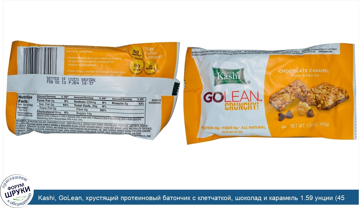 ru Kashi, GoLean, хрустящий протеиновый батончик с клетчаткой, шоколад и карамель 1.59 унции (45 г)