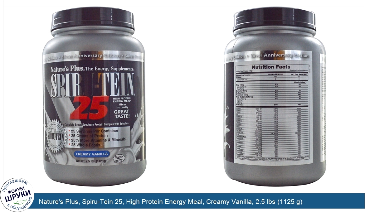 Nature's Plus, Spiru-Tein 25, High Protein Energy Meal, Creamy Vanilla, 2.5 lbs (1125 g)