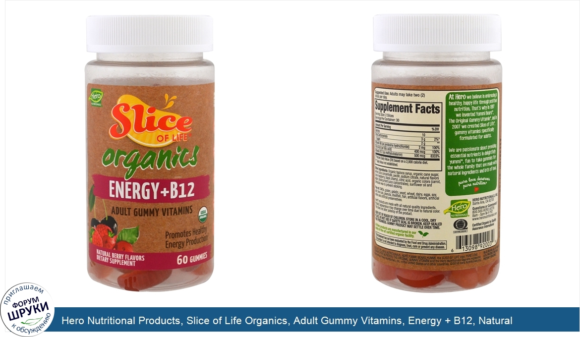 Друзья, если у вас есть отзыв/дополнение/комментарий/вопрос относительно Hero Nutritional Products, Slice of Life Organics, Adult Gummy Vitamins, Energy + B12, Natural Berry Flavors, 60 Gummies - напишите его ответом в эту тему (это будет полезно всему сообществу в целом и вам в отдельности).