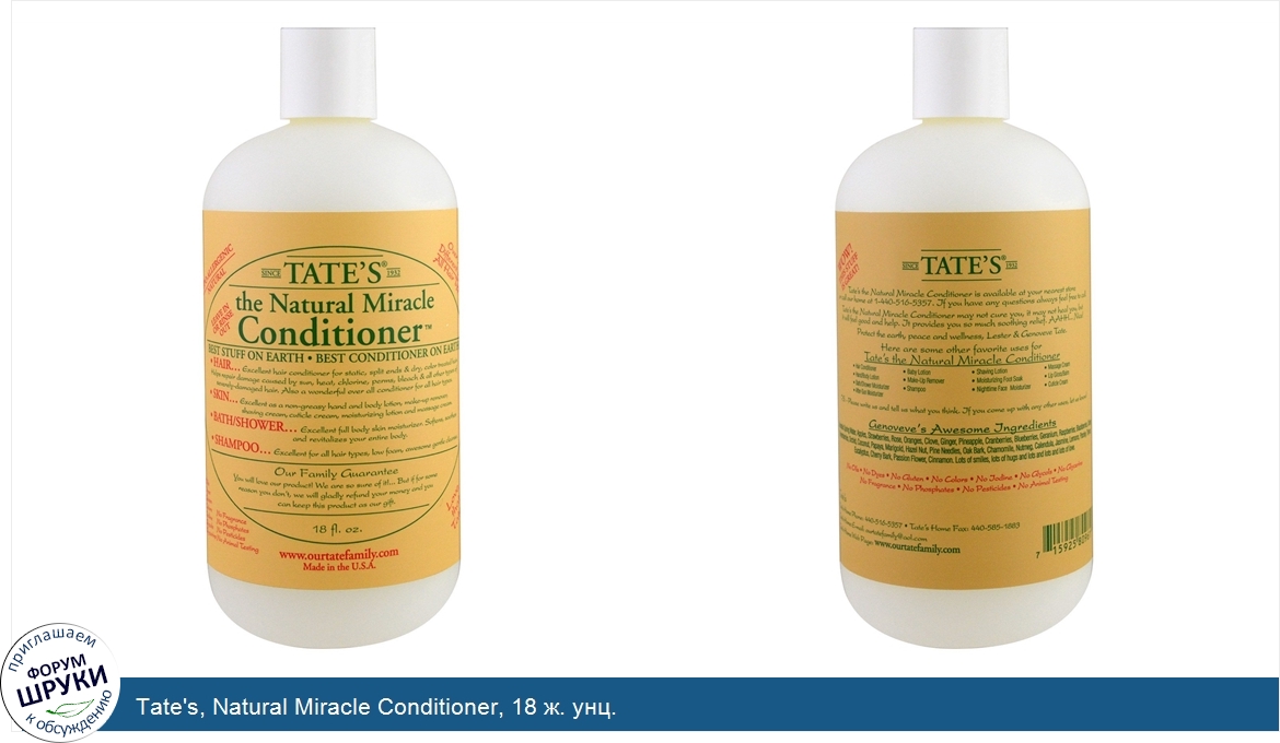 Друзья, если у вас есть отзыв/дополнение/комментарий/вопрос относительно Tate's, Natural Miracle Conditioner, 18 ж. унц. - напишите его ответом в эту тему (это будет полезно всему сообществу в целом и вам в отдельности).