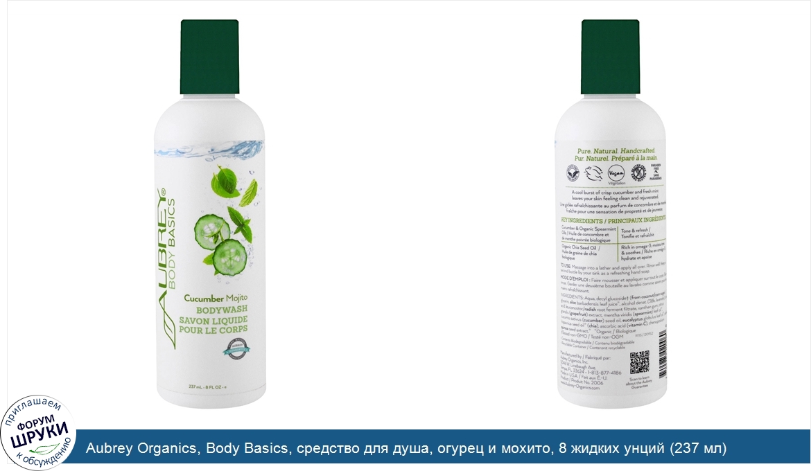 Aubrey Organics, Body Basics, средство для душа, огурец и мохито, 8 жидких унций (237 мл)