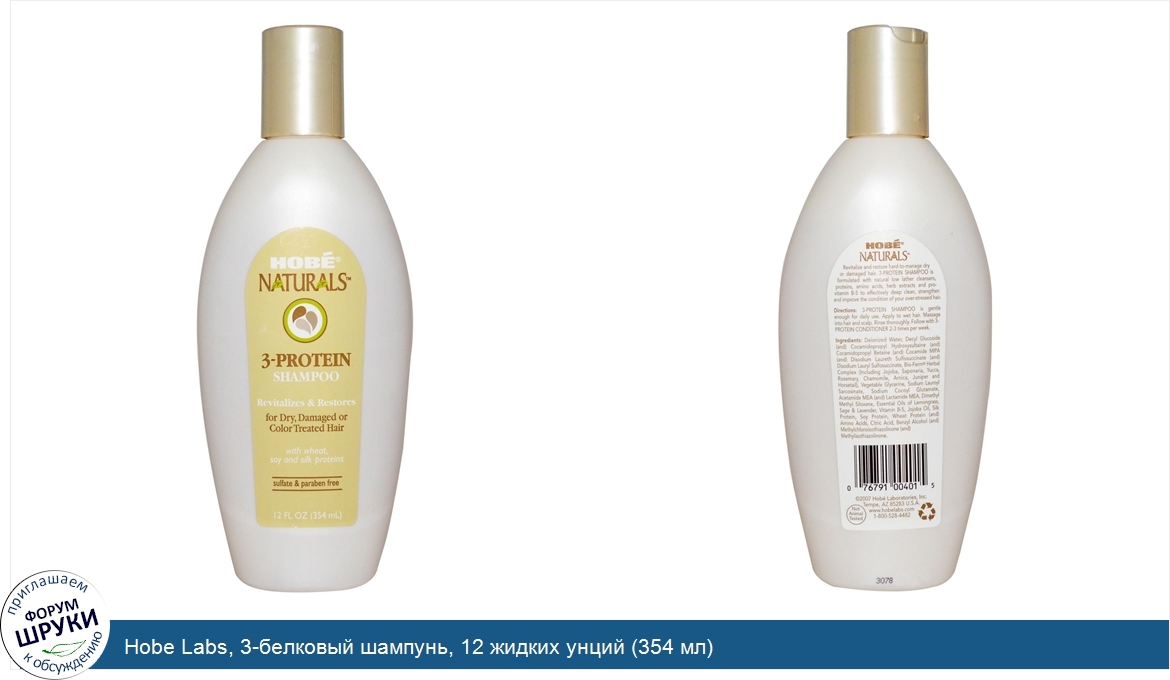 Hobe Labs, 3-белковый шампунь, 12 жидких унций (354 мл)