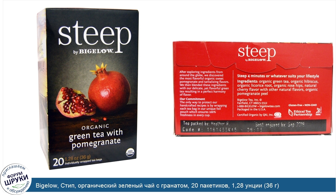 Друзья, если у вас есть отзыв/дополнение/комментарий/вопрос относительно Bigelow, Стип, органический зеленый чай с гранатом, 20 пакетиков, 1,28 унции (36 г) - напишите его ответом в эту тему (это будет полезно всему сообществу в целом и вам в отдельности).