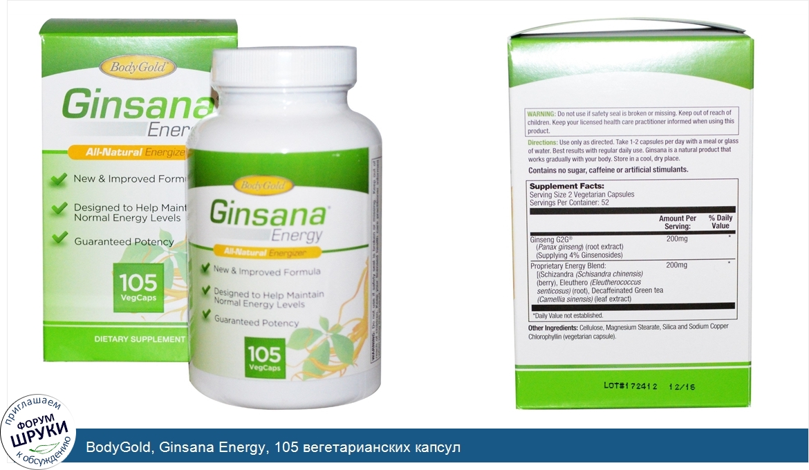 BodyGold, Ginsana Energy, 105 вегетарианских капсул